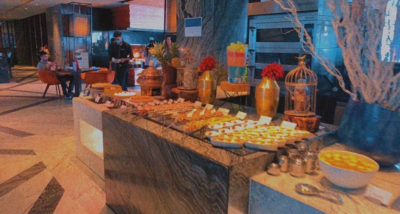 Kitchen District is a vibrant all-day dining restaurant at Hyatt Regency Gurugram, known for its diverse global cuisine and live cooking stations. The restaurant offers a wide range of dishes including Indian, Asian, and Western specialties prepared by expert chefs. Its modern interiors and interactive dining experience make it a popular choice for both hotel guests and local diners. Kitchen District is especially known for its lavish buffet spreads and fresh, high-quality ingredients. It provides a relaxed yet elegant atmosphere for breakfast, lunch, and dinner.