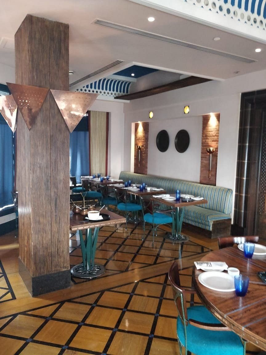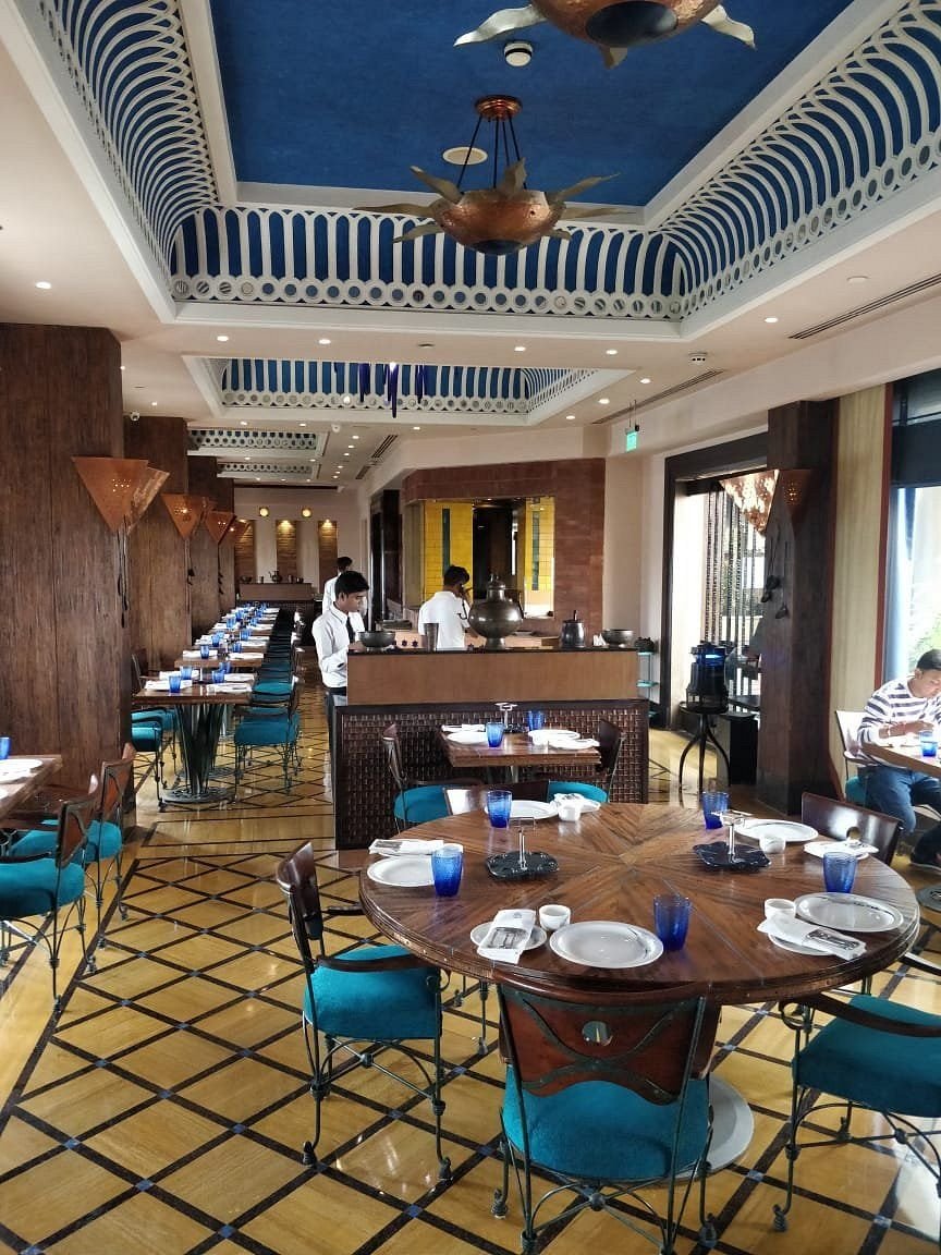 The Great Kabab Factory is a fine-dining restaurant located on the rooftop of Radisson Noida. It is famous for serving a wide variety of traditional Indian kababs made using centuries-old recipes. Guests can enjoy unlimited servings of freshly prepared kababs while watching chefs cook in the live kitchen. The restaurant offers vegetarian, vegan, halal and gluten-free options along with beautiful city views.